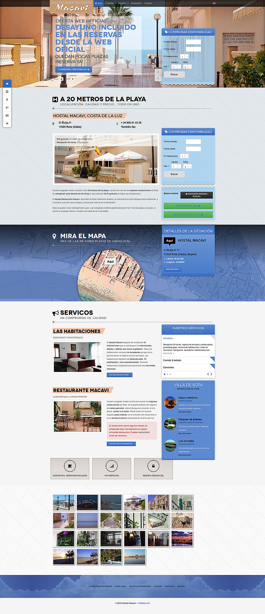 Web del Hostal Macavi en Rota, Cádiz, a escasos metros de la estupenda Playa de la Costilla. Reservas online para clientes.