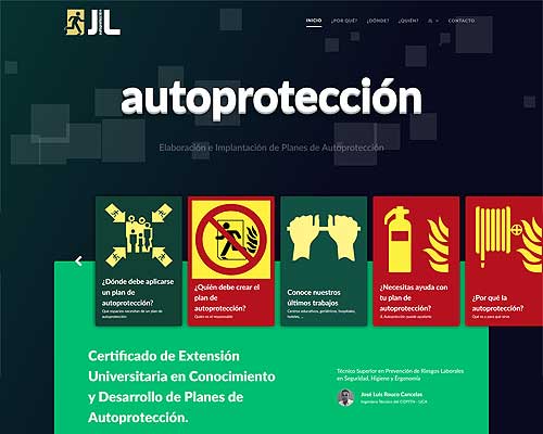 Sitio web corporativo de JL Autoprotección, empresa dedicada a la elaboración e Implantación de Planes de Autoprotección